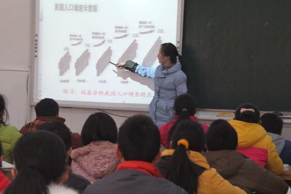 专家组首先观摩了由徐桃红老师上的一堂汇报课——《世界人口》,徐老师在教学过程中熟练的操作交互式电子白板,充分发挥交互式电子白板在课堂教学中的优势,创建有助于学生学习的情境,注重教学过程的非线性设计实现生成式教学,并引导学生基于交互式电子白板合作学习,给专家组留下了很深的印象。