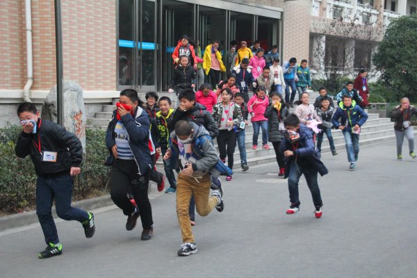 “呜---”当警报声响彻校园,全校学生立即按照事先掌握的逃生技能,用湿毛巾等物捂住口鼻,迅速、有序地撤离班级,沿指定路线跑向开阔的操场。近日,我校又一次开展了消防安全逃生演练活动。