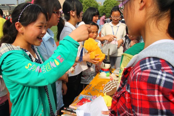 作为我校“仁行”校园文化节的常规活动之一,我校的义卖活动已经连续成功举办了四届。有了前四届的经验,本次义卖活动延续了以往的火爆,且也呈现出了更多的亮点。下课铃声刚刚响罢,同学们就迫不及待的将早已准备好的义卖物品和精心制作的宣传海报拿到各自场地,布置好展台。活动尚未宣布正式开始,但同学们的参与热情却早已按捺不住,并迅速升温。各班的售货员卖力吆喝,在展台前流连的顾客们也精挑细选,物色自己最中意的物品。为保证物品畅销,各班除了常规的书本、文具、玩具、手工艺品等物品外,有些班级还别出心裁的搜罗了一些夏日必备的折扇、小巧玲珑却很精美实用的桌上收纳等小物件,更有个别班级锐意创新,独树一帜,卖起了饮料和点心,吸引了很多人前来购买。老师们也热情参与到义卖活动中来,与学生一起讨价还价,分享快乐的同时,更传递了爱心。